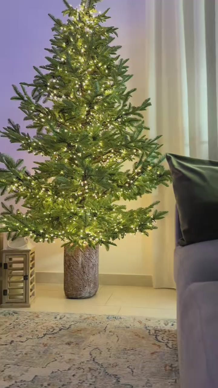 I rami, realizzati al 100% in PE effetto Real Touch, riproducono fedelmente la texture e la naturalezza di un vero abete. Al tatto e alla vista, la sensazione è quella di un albero vero, grazie a una chioma folta, armoniosa e perfettamente bilanciata. L’apertura ad ombrello rende il montaggio semplice e rapido: con un solo gesto, i rami si dispiegano creando una struttura impeccabile, pronta ad accogliere le tue decorazioni.